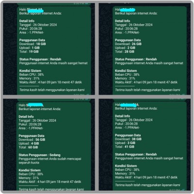 Pemantauan penggunaan bandwidth secara manual memakan waktu dan rentan terhadap kesalahan. Pelanggan juga membutuhkan informasi real-time tentang penggunaan data mereka. Solusinya? Otomatisasi dengan script MikroTik yang terintegrasi dengan WhatsApp.