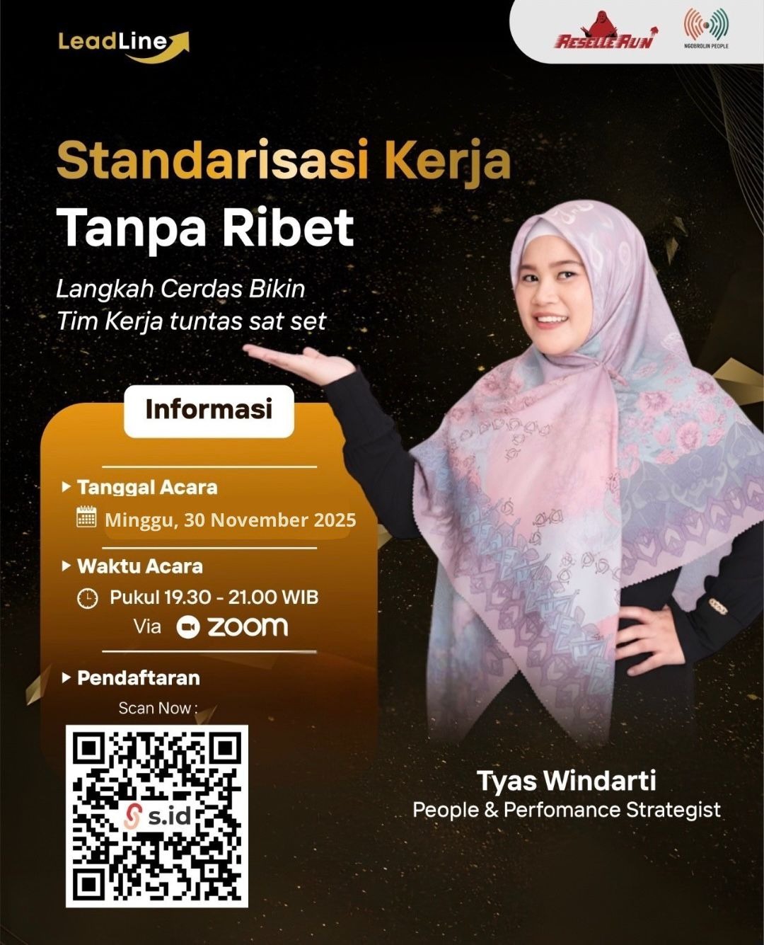 LeadLine bersama Tyas Windarti (People & Performance Strategist) menghadirkan webinar spesial bertajuk "Standarisasi Kerja Tanpa Ribet: Langkah Cerdas Bikin Tim Kerja Tuntas Sat Set".